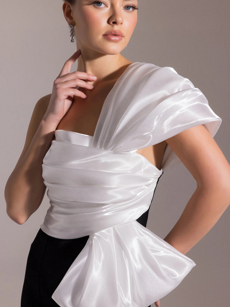 Tek Omuz Drapeli Balık Elbise, klasik abiye anlayışına cesur bir dokunuş getiren farklı tasarımıyla öne çıkıyor. Zarif tek omuz kesimi ve vücuda oturan drapeli balık formu, feminen hatları ön plana çıkarırken; elbiseyi benzersiz kılan detay ise iki renkli tasarımı oluyor.