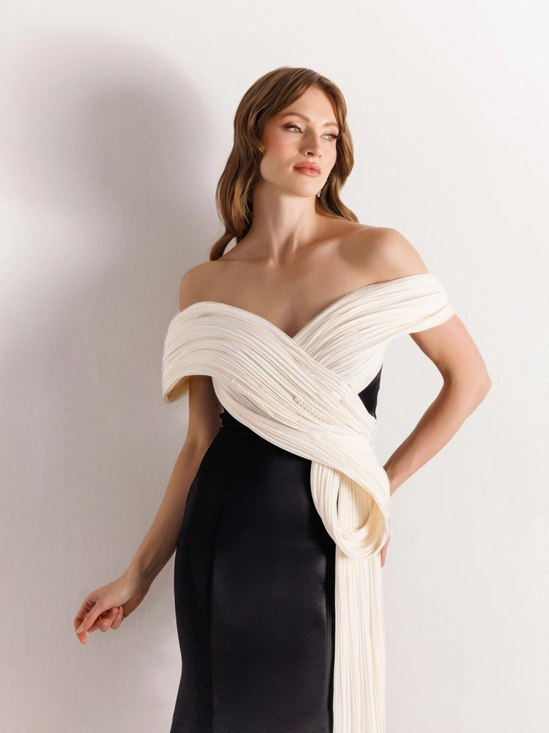 Ekru, fuşya, hardal, pudra ve saks renk seçenekleriyle hem klasik hem de cesur stiller için ideal olan bu elbise, özellikle nişan geceleri, düğün davetleri, gala organizasyonları ve özel akşam yemeklerinde fark yaratmak isteyenlerin ilk tercihi olmaya aday. Modern çizgileriyle dikkat çekerken zamansız şıklığı da içinde barındıran bu model, her bakışta zarafetinizle akılda kalmanızı sağlar.