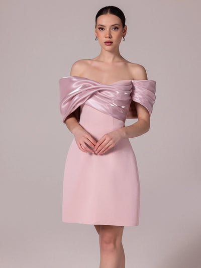 25301-Yakası Organze Detaylı Straplez Krep Mini Elbise